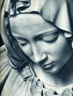 The tiny space between their two index fingers is meant to make us uneasy. I heard an explanation that the human mind functions in such a way that it needs to have tiny gaps filled in—(the example of this is the optical illusion of all the boxes on the white backdrop, and you think you can see shadows at the corners of the boxes, but really it is only white, empty space that our mind is wanting to fill in). Also ideologically, we desire the connection of God and Man (at least, the people back then did—I'm not sure society today cares much for meeting with God on any level). So, the gap left is unnerving, and the blame goes to Adam, who could easily touch God's outstretched finger by a mere lift of his own by about a fraction of an inch. But no. Adam does not make the extra effort. What would you say, then, was Michelangelo's view on religion and on humanism? Whereas the Renaissance brings out the celebration of mankind and the rise of humanism, this is one of the few (if not the only) good depiction of humanism as a bad thing: humans thinking they are too self-important and not needing God.